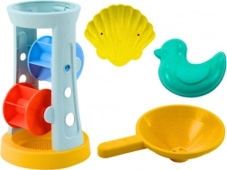 Dvojité kola mlýnku oživí každé hraní. Sitko oddělí drobné částice, trychtýř umožní nalévání vody či písku a vytváření efektů.