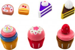 Rozmanité tvary a barvy cupcakes a dortíků podporují rozpoznávání barev a kreativní kombinování.