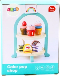 Objevte kouzlo dětské cukrárny s dvoupatrovým dřevěným stojanem na sladkosti. Součástí jsou roztomilé dřevěné zákusky – dorty, koláčky a cupcakes – lakované v živých barvách, které lákají k nápadité hře. Kvalitní dřevěné provedení zaručuje trvanlivost a stabilitu.