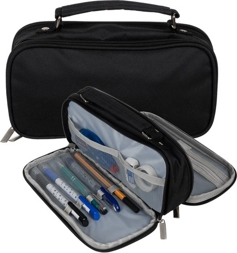 Oddělte psací potřeby, doplňky a elektroniku. Dvoucestné zipy umožní rychlé a pohodlné otevření z obou stran.