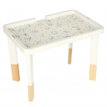 Stolek je vyroben z kvalitního dřeva s oblenými hranami a je lakován netoxickými barvami. Splňuje evropské bezpečnostní normy (CE). Díky praktické desce jej snadno využijete i jako místo pro psaní, kreslení a kreativní tvoření.