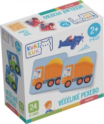 Objevte zábavné a vzdělávací pexeso s dopravními prostředky od značky KukiKuk. Sada obsahuje 24 velkých karet o rozměru 11 × 11 cm z pevného 2mm kartonu, ideální pro malé dětské ruce. Hra rozvíjí paměť, postřeh a slovní zásobu a obsahuje také tipy pro rodiče a pedagogy na další aktivity a herní varianty. Vyrobeno v ČR, doporučeno pro děti 2–6 let.