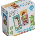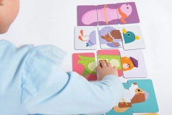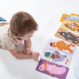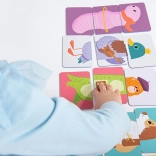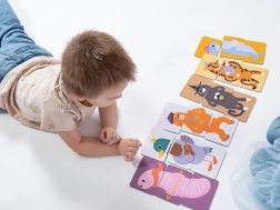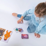 Děti trénují jemnou motoriku, pozornost a logické myšlení při přiřazování správných dílků i vytváření legračních kombinací zvířátek.