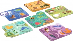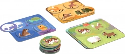 Tato oblíbená hra přátelskou formou seznamuje batolata s 24 zvířátky a jejich prostředími – doma, v lese, na louce, u rybníka i v korunách stromů. Díky velkým žetonům a odolným deskám z 2mm kartonu je hra snadno uchopitelná a bezpečná pro malé děti. Součástí balení jsou také tipy a varianty her pro rodiče a učitele.