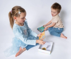Děti se hravou formou učí rozeznávat 24 zvířátek a správně je přiřazovat k místům, kde žijí – doma, na louce, v lese či ve vodě. Skvělé pro rozvoj slovní zásoby a porozumění světu kolem nás.