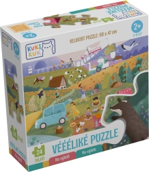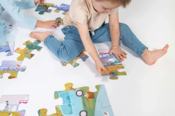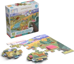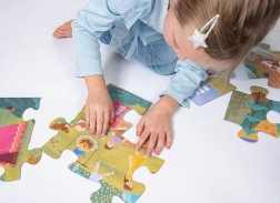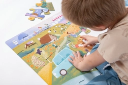 Tato velká dětská puzzle se skládají z 24 extra velkých dílků a po složení vytvoří obrázek o rozměrech 675 × 470 mm. Tvar spojů je navržen tak, aby šly propojit pouze správné části obrázku, což dětem pomáhá učit se souvislosti a posiluje jejich trpělivost. Díly jsou vyrobeny z kvalitního 2mm pevného kartonu, který odolá i razantnější manipulaci.