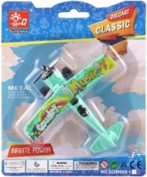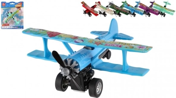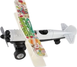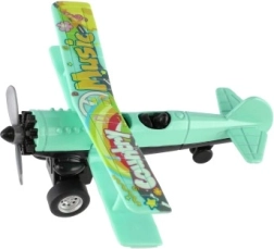 Barevný dvouplošník potěší každého malého pilota. Díky zpětnému natažení vyrazí po uvolnění vpřed a při jízdě se roztočí přední vrtule. Odolné provedení z kovu a plastu, kompaktní rozměr 10 × 11 cm a mix atraktivních barev z něj dělají skvělou hračku pro děti od 3 let.