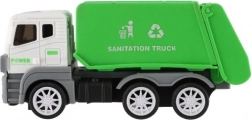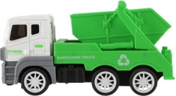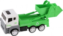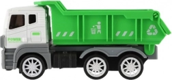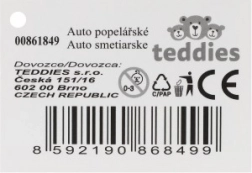 Tematické potisky a funkční prvky (např. korba, nádrž) učí děti o čistotě města, recyklaci a práci na stavbě.