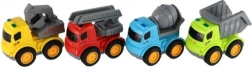 Tato sada stavebních vozidel přináší dětem svět stavby přímo do pokojíčku i na pískoviště. Každé autíčko je vyrobeno z odolného plastu, má setrvačníkový pohon a láká na výrazné barvy a funkční prvky, jako je sklápěčka, miska míchačky či výsuvné rameno.