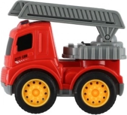 Sklápěč, míchačka, bagr i hasičské auto/jeřáb dodají hře rozmanitost a děti si snadno vytvoří vlastní staveniště.