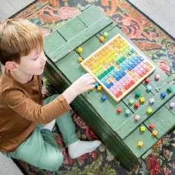 Tato dřevěná tabulka s násobilkou je skvělou pomůckou pro rozvoj logického myšlení a jemné motoriky. Barevné kostky s příklady motivují děti k objevování a učení formou hry, přičemž okamžitá kontrola výsledku podporuje samostatnost a sebedůvěru.