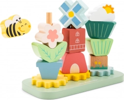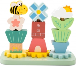 Dřevěná stohovací hračka Mlýnská zahrádka je ideální pro děti od 12 měsíců. Obsahuje pestré dřevěné dílky z bukového dřeva, které mohou děti snadno skládat. Tvořivou zábavu poskytují prvky jako květiny, stromy, větrné mlýny a včelky, které lze skládat na základní desce s tyčkami.