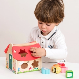Tento domeček na třídění tvarů je ideální hračkou pro děti od 12 měsíců. Domeček obsahuje osm různých tvarů, které se děti učí rozpoznávat a vkládat do správných otvorů. Po dokončení úkolu mohou děti otevřením střechy tvary snadno získat zpátky.