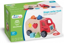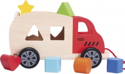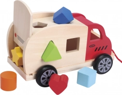 Tato kvalitní dřevěná hračka spojuje hraní a učení. Díky otvorům ve tvaru hvězdy, srdce a dalších geometrických tvarů si děti intuitivně osvojují logické myšlení a trpělivost. Zadní dvířka korby umožní snadné vyjmutí všech dílků – a zábava může začít znovu.