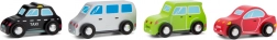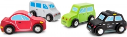 Tato sada nabízí čtyři dřevěné autíčka, která mají jednoduchý a barevný vzhled, přitahující pozornost malých dětí. Autíčka jsou lehká a snadno uchopitelná, což je činí ideálními pro rozvíjení jemné motoriky. Děti je mohou použít ke kreativitě a nápadité hře, což zároveň pomáhá rozvíjet jejich schopnosti vyjadřování.