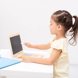 Notebook nabízí pestrobarevné magnetické klávesy a číslice, ideální pro výuku písmen a čísel hravou formou.