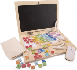 Nechte vaše dítě objevit svět písmen a číslic s tímto dřevěným notebookem, který nevyžaduje žádné baterie nebo nabíječky. Všechny písmena, čísla a klávesy jsou magnetické, což umožňuje snadné přichycení ke spodní části notebooku.
