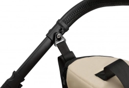 Lehký a odolný hliníkový rám v kombinaci s nepropustnými EVA koly (7" vpředu, 10" vzadu) zajišťuje stabilitu, tichou jízdu a snadnou údržbu. Teleskopická rukojeť se přizpůsobí výšce rodiče, aretace předních kol pomůže v nerovném terénu a velký koš unese vše potřebné. Nechybí pětibodové pásy, vícepolohové nastavení zádové opěrky i opěrky nohou pro ergonomickou pozici dítěte.
