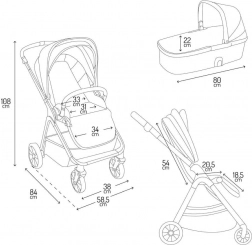 MoMi Giselle 2v1 je univerzální kočárek, který roste s vaším dítětem. Prostorná hluboká korba pro miminko a pohodlné sportovní sezení pro starší dítě snadno prohodíte pomocí paměťových tlačítek. Díky otočné sedačce zvolíte kontakt z očí do očí nebo výhled do světa. Rozšiřitelná stříška s magnetickým kšiltem a kvalitní polstrování se postarají o pohodlí během každé jízdy.