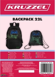 Stylový školní batoh pro hráče KRUZZEL kombinuje odolnost, pohodlí a chytrou organizaci. Je vyroben z tkaniny OXFORD 600D, nabízí objem 22 l, ergonomické popruhy s pěnou EPE a prodyšná záda. Má polstrovanou kapsu na notebook, boční síťované kapsy a v balení najdete i vak na tělocvik nebo přezůvky ve stejném herním designu.