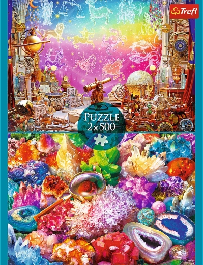 Dopřejte si hodiny relaxu a soustředění s tímto setem puzzle 2×500 dílků. Motivy plné fantazie – magické observatoře a barevné krystaly – potěší milovníky krásných ilustrací i nadšené skládače. Každý hotový obrázek má rozměr 48 × 34 cm, takže se skvěle hodí k zarámování.
