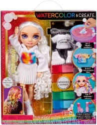 Rainbow High Panenka s Vodovkami vám umožní přetvořit její vzhled dle vaší fantazie. Sada obsahuje panenku v bílém outfitu a šest smývatelných prášků v duhových barvách: červená, oranžová, žlutá, zelená, modrá a fialová. Tyto prášky můžete snadno aplikovat a změnit barvy panenčina oblečení i vlasů.