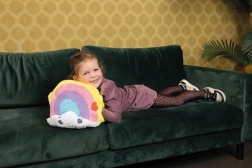 Objevte všestrannost tohoto plyšového polštáře - polštář, rukávník na ohřátí rukou a plyšák v jednom. Děti si ho zamilují nejen pro jeho měkkost, ale také pro zábavnou formu relaxace. Díky dvěma otvorům po stranách může sloužit jako rukávník pro zahřátí rukou - perfektní pro cesty autem, vlakem či letadlem. Boční otvory také poskytují úkryt pro malé dětské poklady.