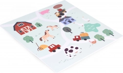Ilustrace farmy se zvířátky, stodolou a cestami vtáhnou děti do kreativní hry. Jasné barvy a detailní motivy podporují fantazii i smyslové vnímání.