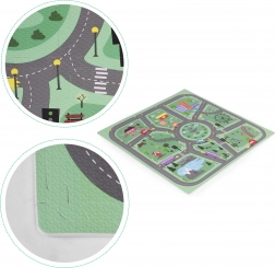 Tato kvalitní pěnová podložka s detailním motivem města nabízí dětem nekonečné možnosti hry: silnice, ulice a křižovatky zvou k jízdám autíčky a k vymýšlení vlastních příběhů. Díky tloušťce 1 cm je povrch příjemně měkký, tlumí nárazy a zároveň izoluje od studené podlahy. Podložka je z certifikované EVA pěny, která je lehká, odolná a šetrná k dětské pokožce.