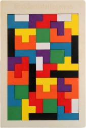 Dřevěná logická skládačka přináší chytrou zábavu pro malé i větší děti. Úkolem je poskládat 40 pevných dřevěných dílků různých tvarů a barev tak, aby vytvořily kompaktní obdélník. Hra přirozeně podporuje analýzu tvarů, prostorovou představivost a řešení problémů.
