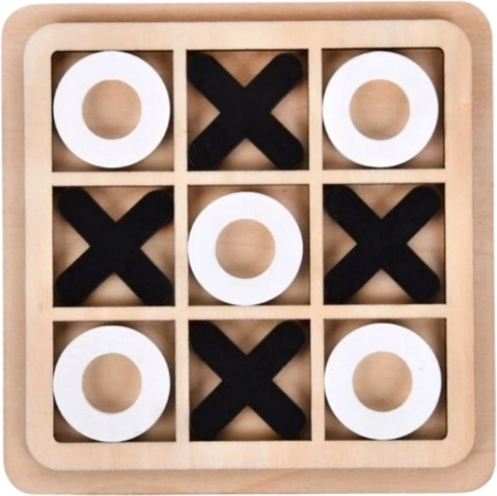 Dřevěná hra piškvorky (tic-tac-toe) je nadčasová klasika, která rozvíjí strategické plánování, analýzu situací a paměť. Díky pevnému dřevěnému provedení a zaobleným hranám je bezpečná a příjemná na dotek, zatímco kontrastní figurky X a O zajišťují skvělou přehlednost.