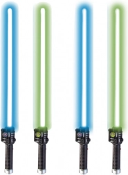 Díky napájení na 3× 1,5 V AA (součást balení) je meč připraven k okamžitému použití. K dispozici jsou dva světelné varianty – zelená a modrá; barva je dodávána náhodně. Hračka splňuje přísné bezpečnostní standardy, takže si zábavu můžete užít s klidem.