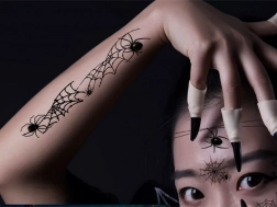 Tetování nanesete během pár sekund: přiložte, navlhčete, sejměte papír – hotovo. Efekt můžete ještě umocnit líčením: tmavými stíny, linkami či umělou krví vytvoříte hloubku, stínování a lesk čerstvých ran. Po akci tetování snadno umyjete vodou a mýdlem nebo odličovačem.