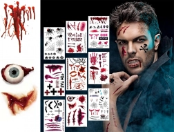 Díky pestré škále motivů snadno doladíte make-up na Halloween, tematické večírky i focení. Každý arch nabízí mix strašidelných designů od krvavých šplíchanců přes pavučiny až po hluboké jizvy – pro maximálně realistický efekt.
