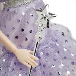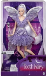 Okouzlující sběratelská panenka Barbie Signature Zoubková víla potěší malé milovníky pohádek i dospělé sběratele. Přichází v třpytivých fialových šatech s volánky, průsvitnými křídly, stříbrnou hůlkou a tiárou. Součástí je také lesklý váček s „mincemi víly“ pro kouzelný rituál vypadlého zoubku.
