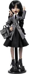 Součástí je stojánek pro bezpečné vystavení, odnímatelný batůžek a výměnné ručky pro různé pózy. Propracované boty s reliéfními detaily a vzorované punčochy zvýrazňují unikátní design. Panenka je skvělým dárkem pro sběratele i fanoušky seriálu, kteří ocení kvalitní provedení, věrné detaily a tmavou atmosféru.