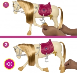 Připojte se k Barbie na nezapomenutelných dobrodružstvích s jejím tančícím koněm, který nabízí hodiny zábavy a tvořivosti. Kůň umí více než jen tančit - může také hrát písničky a reagovat na hmatové podněty. S 12 různými doplňky si děti mohou užívat nekonečné příběhy plné fantazie.