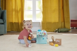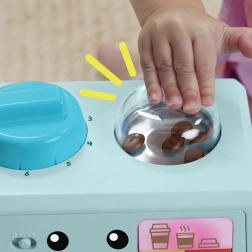 Děti mohou stisknout tlačítka pro simulaci přípravy kávy, otáčet kolečkem pro napěnění nebo pohybovat mlýnkem na kávu, aby viděly, jak vyskakují kávová zrna. Součástí jsou i hrací doplňky: dva kelímky na kávu, lžička, croissant, měkká taška na zboží s víčkem, kelímek na mléko a nosící podložka.