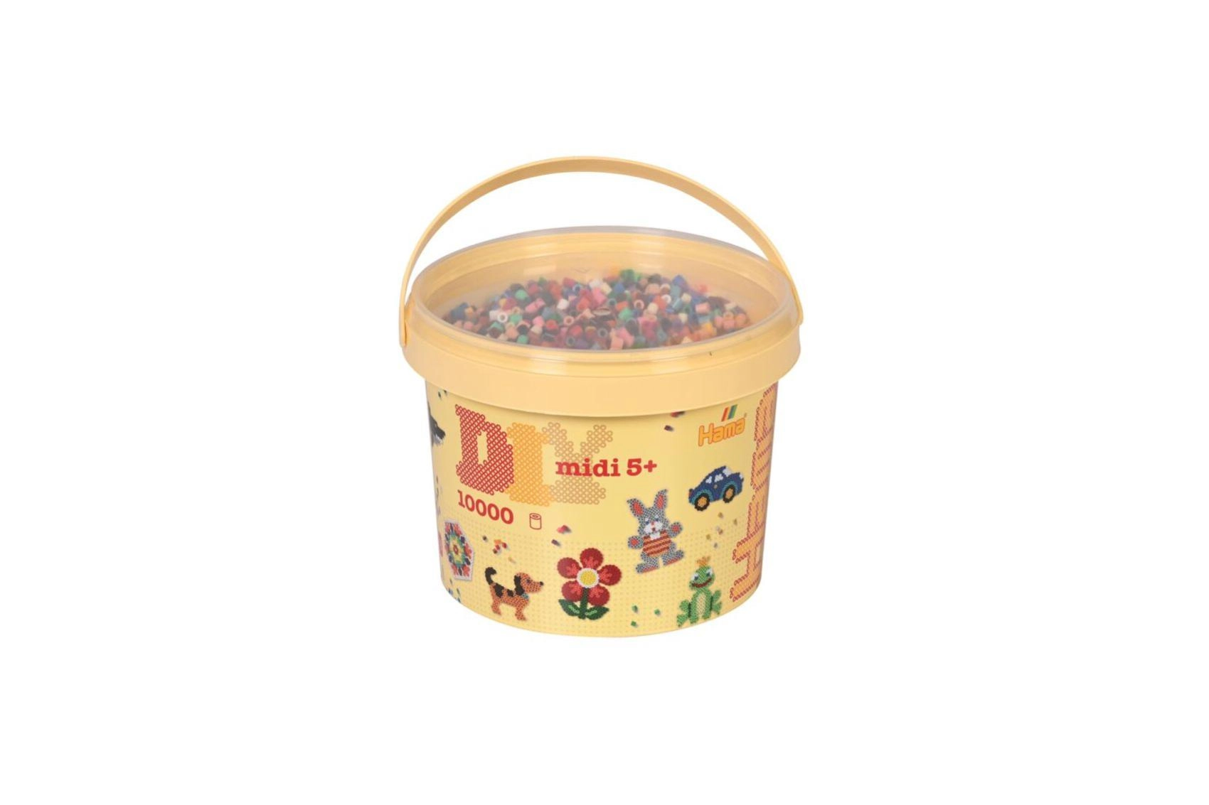 Objevte kreativní svět s kbelíkem plným fantazie: zažehlovací korálky HAMA MIDI obsahují přibližně 10 000 kusů v pestrých barvách pro nekonečné tvoření. Podporují jemnou motoriku, trpělivost a rozpoznávání tvarů a barev. Ideální pro děti od 5 let, průměr korálku 5 mm, vyrobeno v Dánsku.