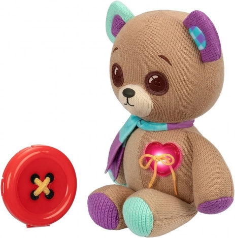Knoflíkové oči ukazují štěstí, smutek či překvapení, medvídek mrká, naklání hlavičku a vydává zvuky pro živý, pohlcující zážitek.