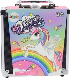 Elegantní kosmetický set v černém kufříku potěší každou malou milovnici líčení a manikúry. Obsahuje barevné oční stíny (matné, saténové i brokátové), laky na nehty, glitry a praktické doplňky. Lehký a snadno přenosný kufřík je ideální na cesty i hraní s kamarádkami. Skvělý dárek pro děti 3+, podporuje kreativitu a jemnou motoriku.