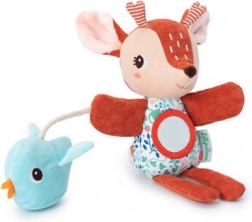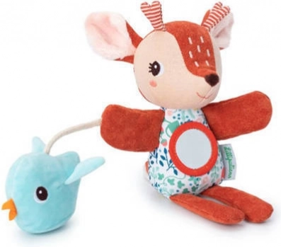 Maňásek je ideální pro společné čtení, vyprávění i uklidnění před spaním. Integrované zrcátko, grzechotka/zvoneček a šuštící ptáček přirozeně stimulují zrak, sluch i hmat. Skvělý tip na dárek pro miminka od 6 měsíců.