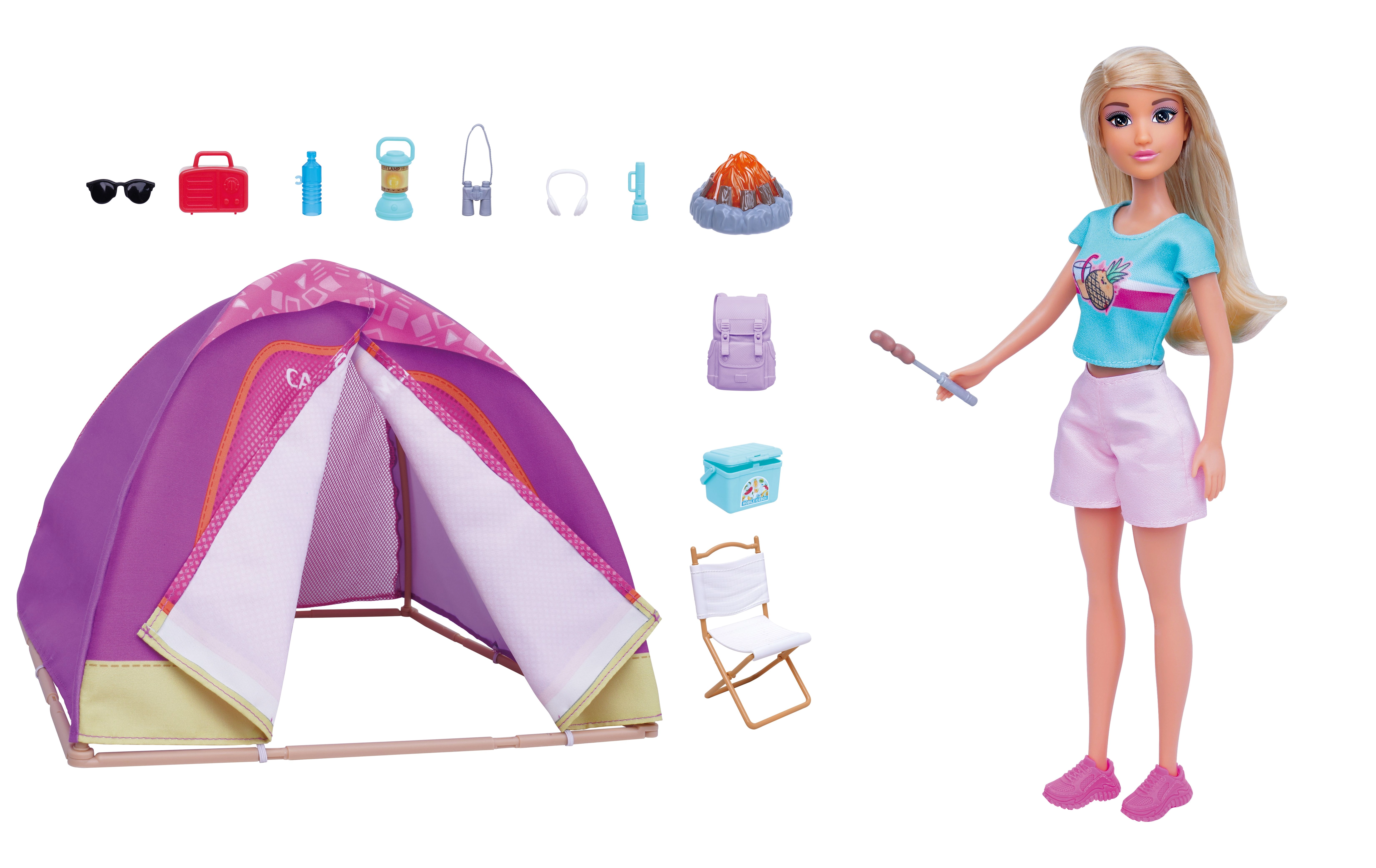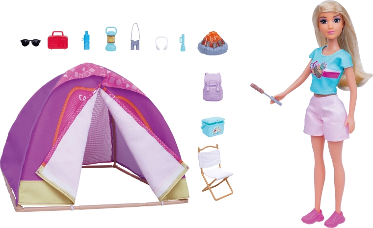 Tento kempingový set s panenkou přináší dětem spoustu možností ke hře – od stavění stanu přes přípravu tábořiště až po opékání u ohně se světelným efektem. Panenka má vyjímatelné oblečení a doplňky, snadno se drží a je ideální pro samostatné i skupinové hraní.