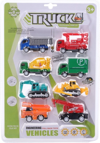 Sada 8 dopravních prostředků pro všechny malé milovníky aut a vlaků potěší svými kompaktními rozměry a zpětným pohonem, který zajišťuje zábavnou a interaktivní hru.