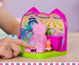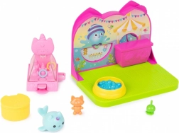 Ponořte se do pestrobarevného světa GABBY'S DOLLHOUSE s tematickým pokojíkem Narvalkočky. Děti mohou posadit postavičku do bazénku s míčky, zkusit štěstí v házení kroužků a otočit ovladačem, který změní pozadí scény – díky tomu je každé hraní jiné a nabité fantazií. Nechybí ani pult s občerstvením pro ještě autentičtější atmosféru karnevalu.