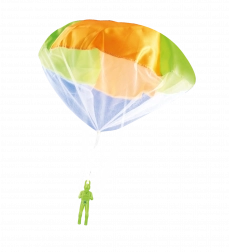 - Bezpečná zábava – měkký, lehký padák a jednoduché ovládání.