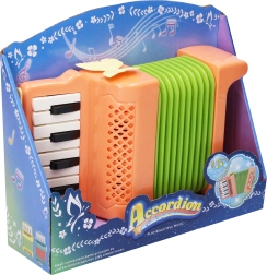 Zábavná dětská tahací harmonika akordeon přináší realistické zvukové efekty a podporuje rozvoj rytmu a hudebního cítění. Kompaktní rozměry usnadní držení i menším dětem, ideální jako první hudební nástroj. Napájení zajišťují 2× AA baterie (nejsou součástí). Vhodné pro děti od 3 let.