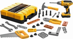 Součástí je pestrá škála nástrojů a doplňků pro nápaditou hru a stavění. Díky bezpečnému provedení je sada vhodná pro děti, které chtějí napodobovat dospělé a učit se základům práce s nářadím.