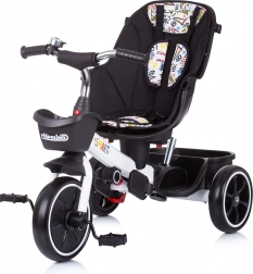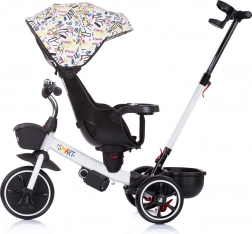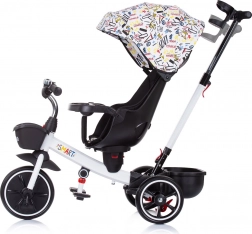 Praktická dětská tříkolka 2v1 CHIPOLINO Smart v elegantní bílé barvě roste s vaším dítětem od 1 roku až do 25 kg. Nabízí jízdu pod dohledem rodiče i samostatné šlapání, pohodlné polstrované sedadlo s otočením o 360°, kvalitní gumová kola a bohatou výbavu pro bezpečí a pohodlí. Nechybí nastavitelná rodičovská rukojeť, odnímatelná stříška se sluneční clonou, nožní brzda, úložné koše vpředu i vzadu a držák nápojů.