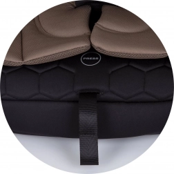 Měkké polstrování, 5bodové pásy s polstry a výškově nastavitelná opěrka hlavy zajistí pohodlí i perfektní usazení.